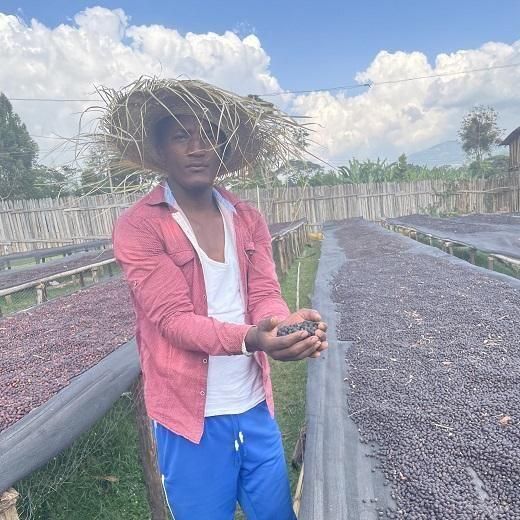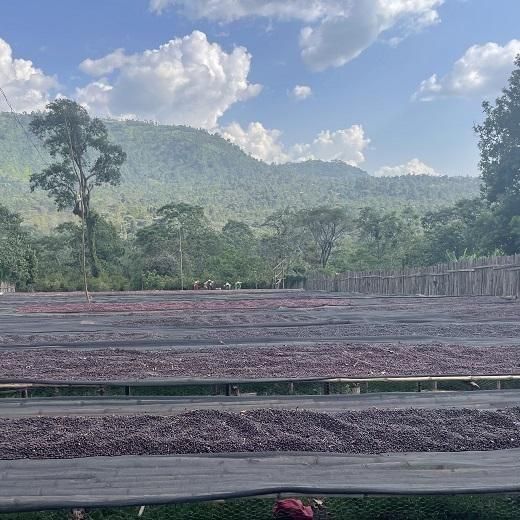 2020年に開催された第1回のエチオピア カップ・オブ・エクセレンスで優勝した、ニグセ・ゲメダ・ムデさんの手がけるロットです。このドライングステーションでは乾燥用のアフリカンベッドは品質管理が行き届く数量しか所有していません。小さめの乾燥場の中でスタッフが懸命に働いています。